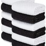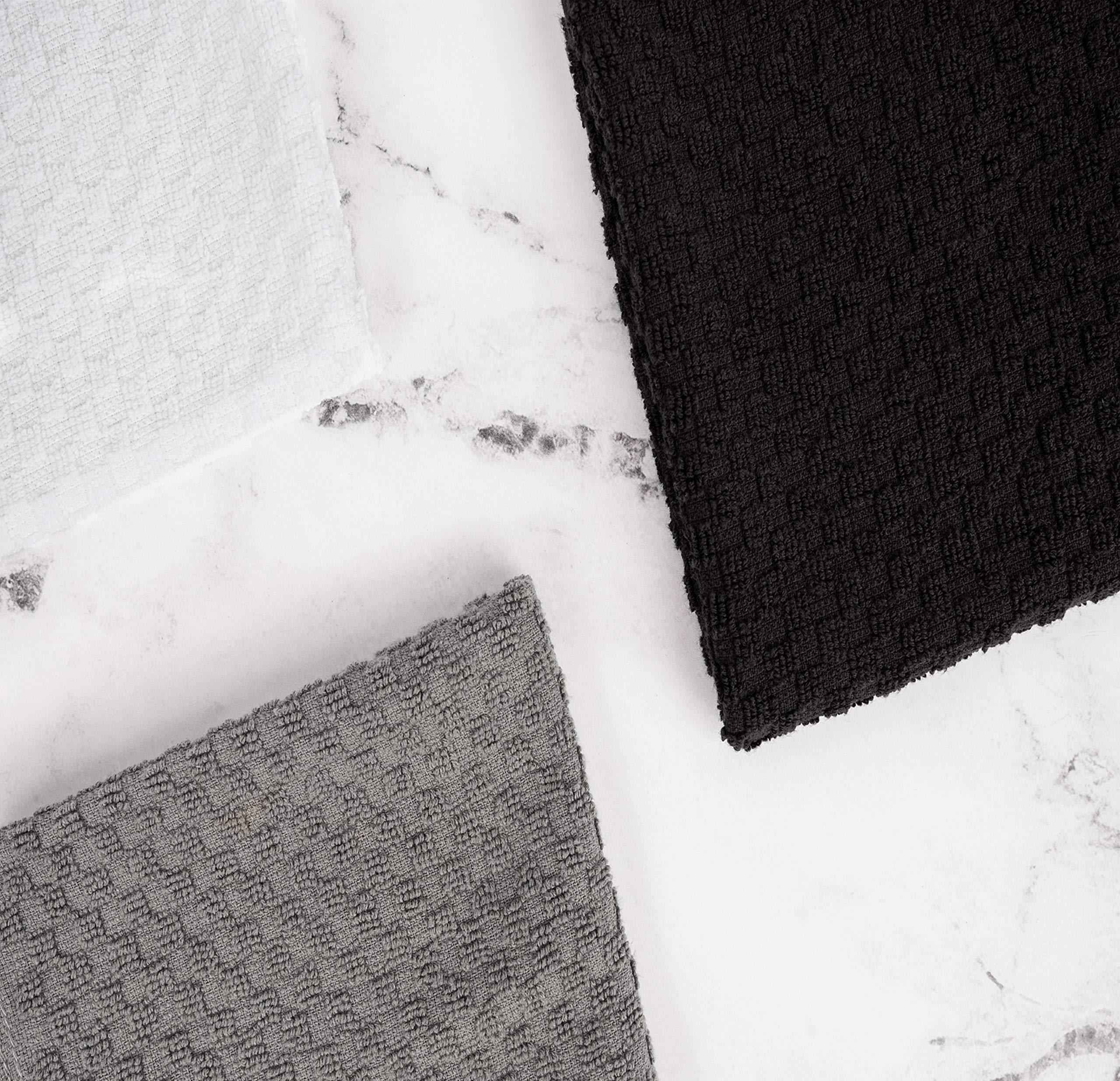 1.UNMATCHED QUALITY: Our black and white dish towels are designed with outstanding craftsmanship and made from premium dobby weave 100% cotton ensuring they withstand years of frequent use and washing without losing their plush feel and absorbency