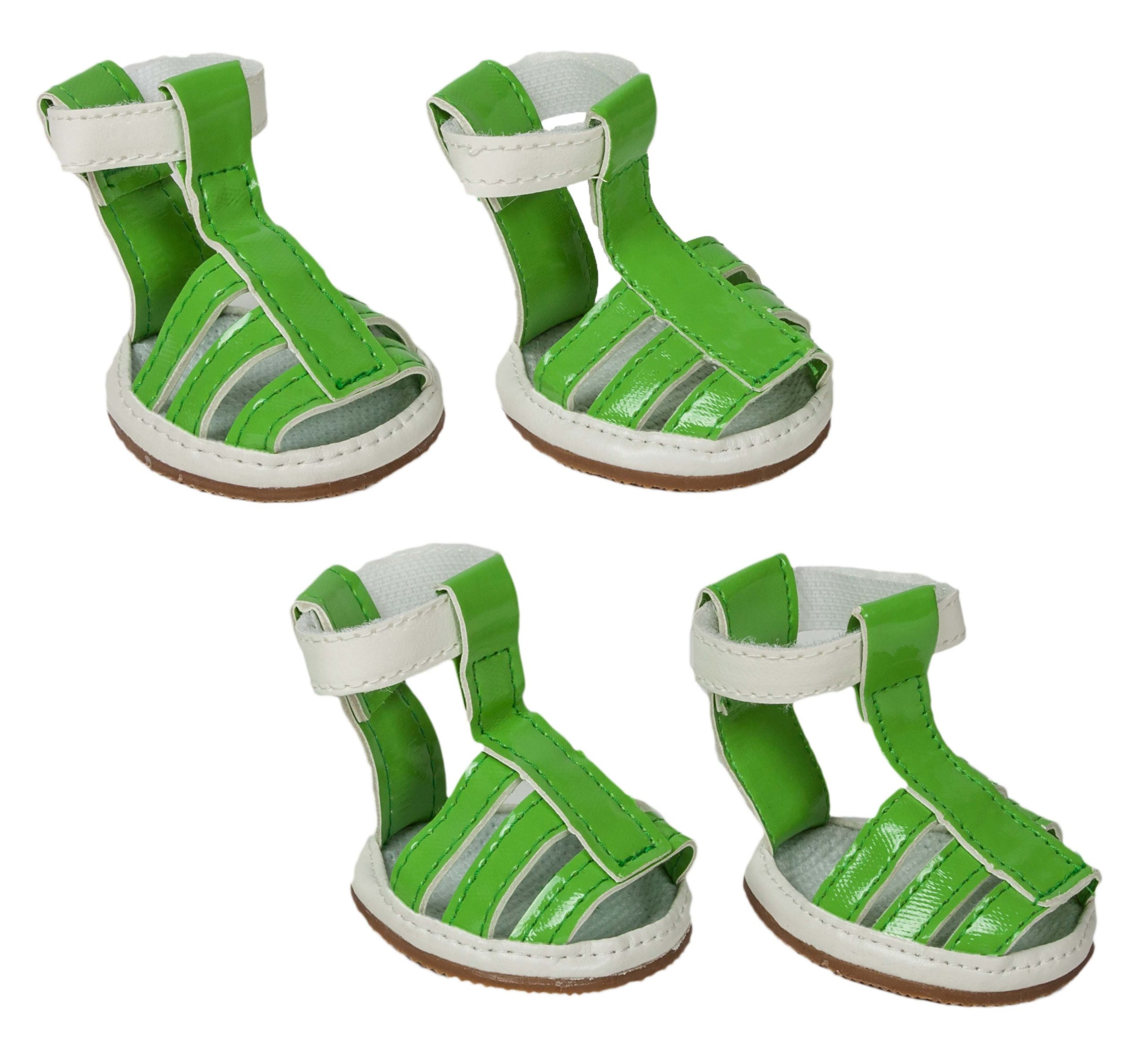 The Pet Life 'Buckle Supportive' PVC Waterproof Dog Sandals are composed of Waterproof PVC and Feature Rubberized Grips along the Bottom Soles for great traction. These Dog Shoes are essential while walking your dog against the hotter terrain preventing your Dogs Paws against the Hot Asphalt and in addition to slippage that may occur with older dogs. These Pet Shoes slip on and Velcro closed for Easy On and Off access. These shoes offer High-Support whereas the support pressure is controlled by the tightness around the Dogs ankles. Comes in a set of 4. Available in Multiple Sizes and Colors.