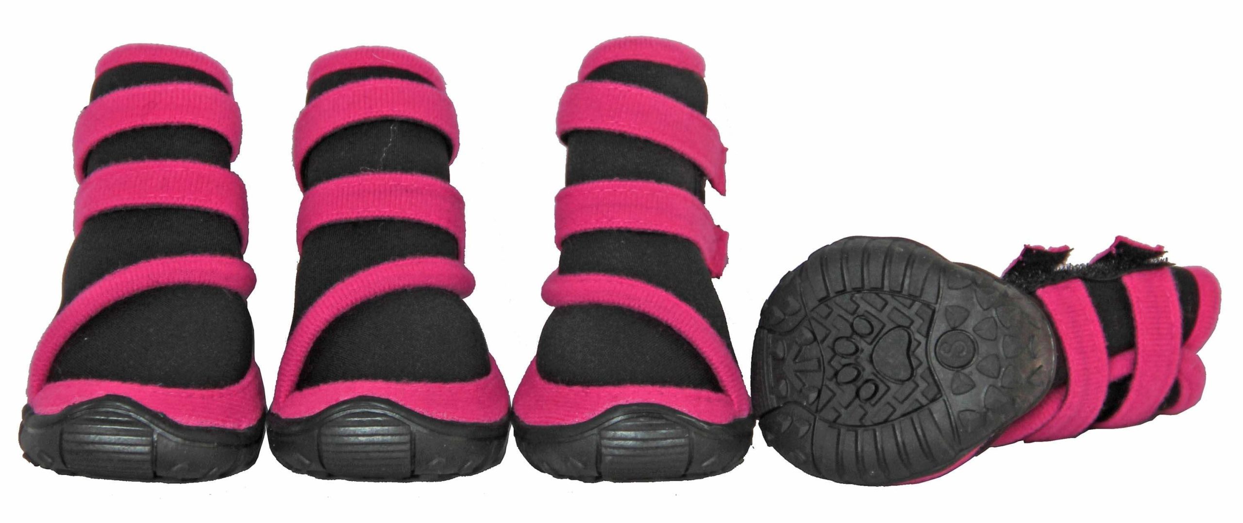 The Pet Life 'Premium Cone' High Support Performance Dog Shoes are Composed of Fleece and stretchable Lycra Fabrics. These Dog Shoes are meant to withstand any and all weather terrain. These Pet Shoes are essential while walking on the Hot Asphalt and prevent Frostbite during the Winter. These Dog Sneakers feature Full Wrap-around support when placed on the dog and the amount of pressure is controlled and adjusted based on the amount of ankle support you wish to provide to your pet and they can be placed and removed off your pet more easily. These Dog Boots are additionally essential while your dog is recovering from any leg, ankle or foot related injuries especially for elder dogs. They are Machine Washable and Completely Waterproof. The Rubberized Soles create added gripping capabilities. Available in Multiple Sizes and Colors. Comes in a set of 4.